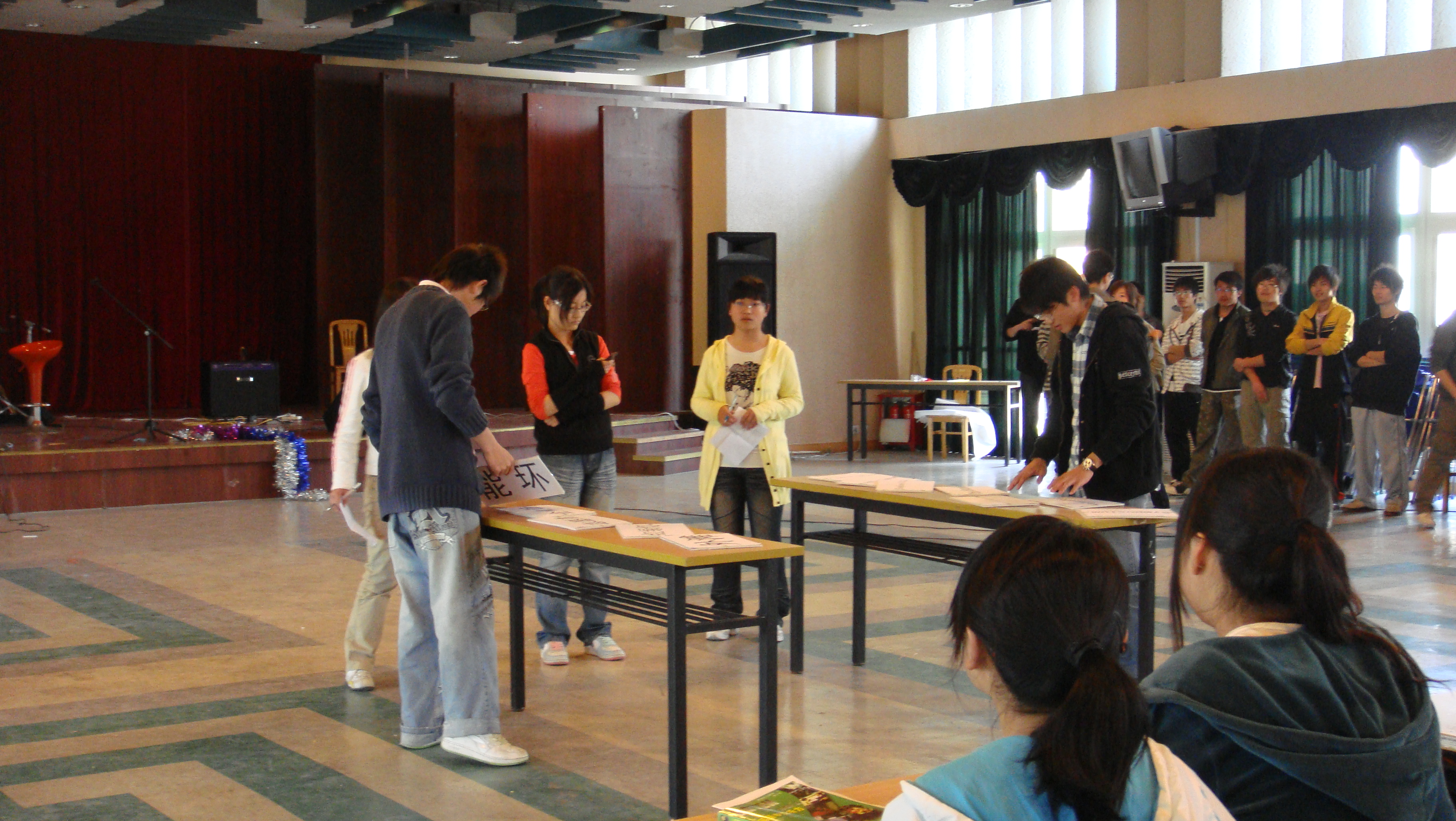 近日, 由计信学院举办的“世博英语ABC”活动于大学生活动中心顺利举办。 活动分为4个环节:世博单词大PK,世博城市ABC,世博建筑对对碰和世博口号大拼盘。每个小游戏都考验了同学们的英语水平,也提升了同学之间的默契。最终能环学院取得第一,计信学院与经管学院并列第二,英语系、数理系、电自学院、国交学院并列获得第三。