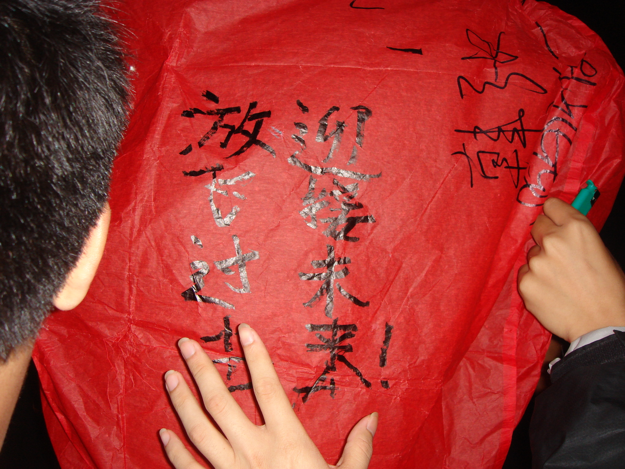 5月18日下午,2008141班在北3116教室制作了孔明灯,并在晚8点,在电力学院南汇校区的山坡上放飞。经过大家的努力,孔明灯缓缓升上天空,带着同学们的祝愿,渐渐远去。