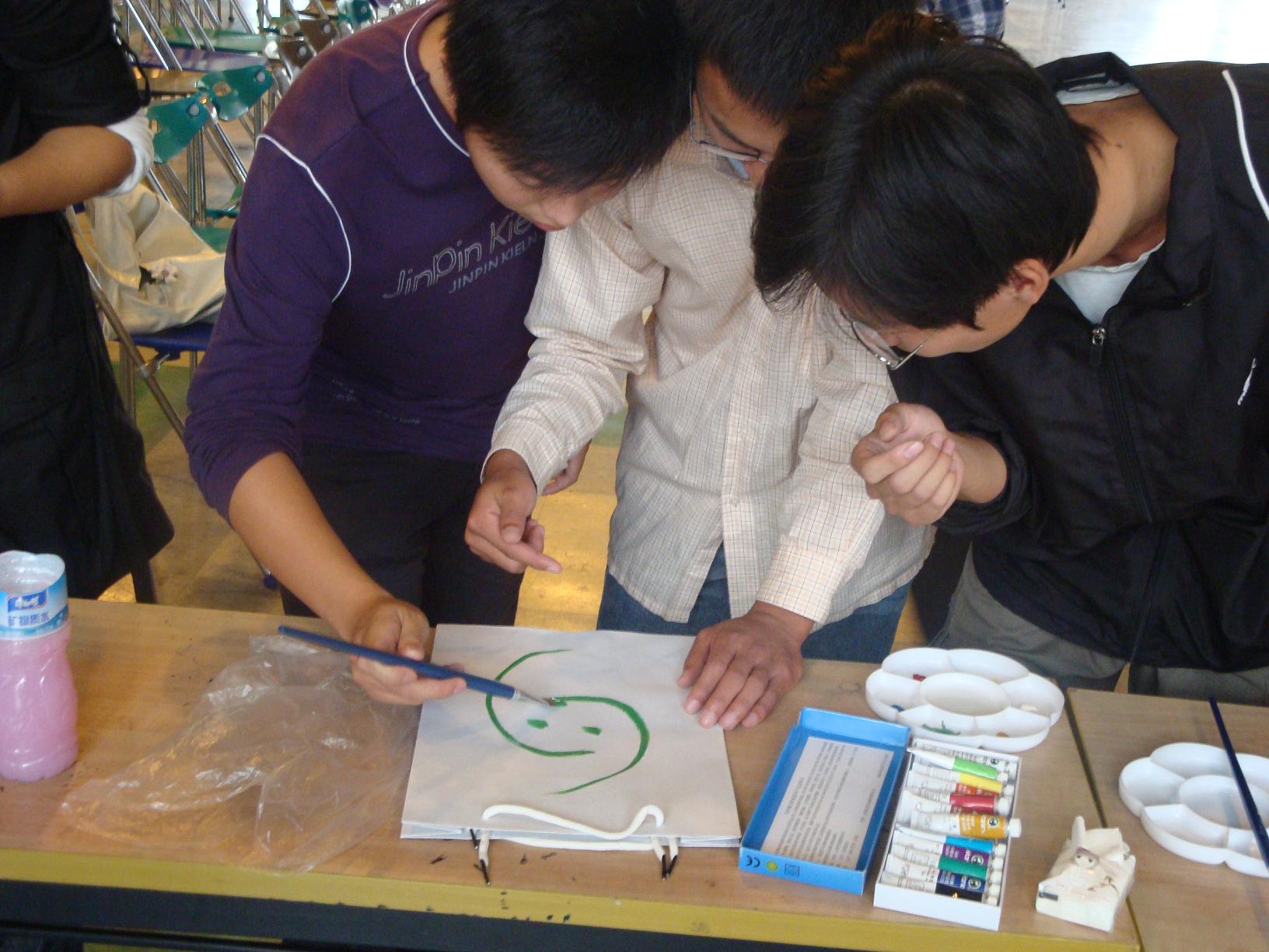 活动开始,团总支副书记彭丽婷发言并宣布活动开始。此次活动分为四个环节:世博知识问答;废弃报纸、易拉罐创意制作;老上海里弄游戏;环保袋DIY。在活动中,同学们将自己对世博的了解和创意画在了环保袋上,并通过各式各样的手工作品展示出来。在柔和的旋律下,同学们尽兴的玩着、讨论着自己的作品,整个活动中心的气氛非常活跃。