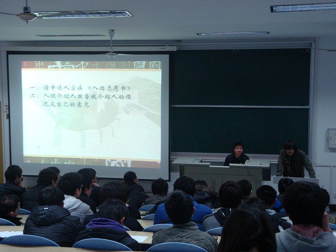大会在团旗与庄严的团歌中开始, 7位入团积极分子表达自己在过去的日子中对共青团的认识及向往,同时也表明了入团后将会对自己有更高的要求。经过现场投票,大会决议公布投票结果,正式吸纳7位同学加入团组织。新团员钱俊同学作为新团员代表也做了发言。