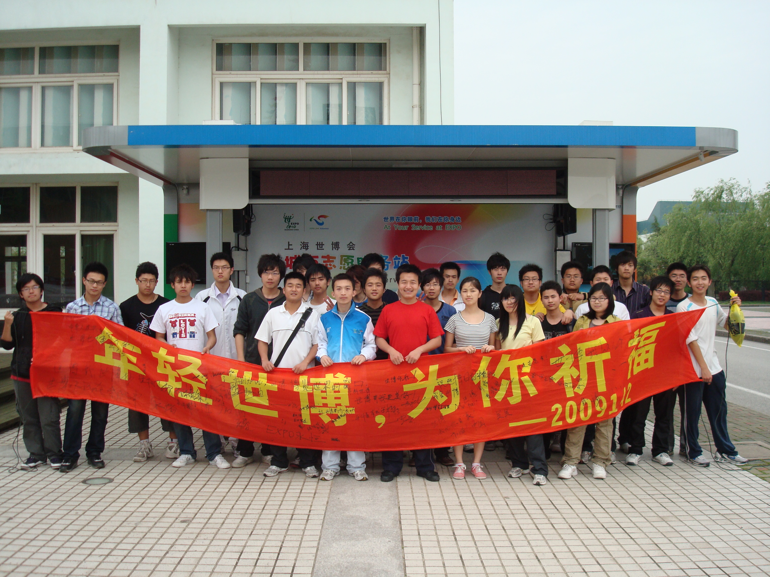 近日,2009142团支部在南四教举行主题为“年轻世博•为你祈福”的团日活动。同学们在“年轻世博•为你祈福”的横幅上写下了自己对世博会的美好祝福。