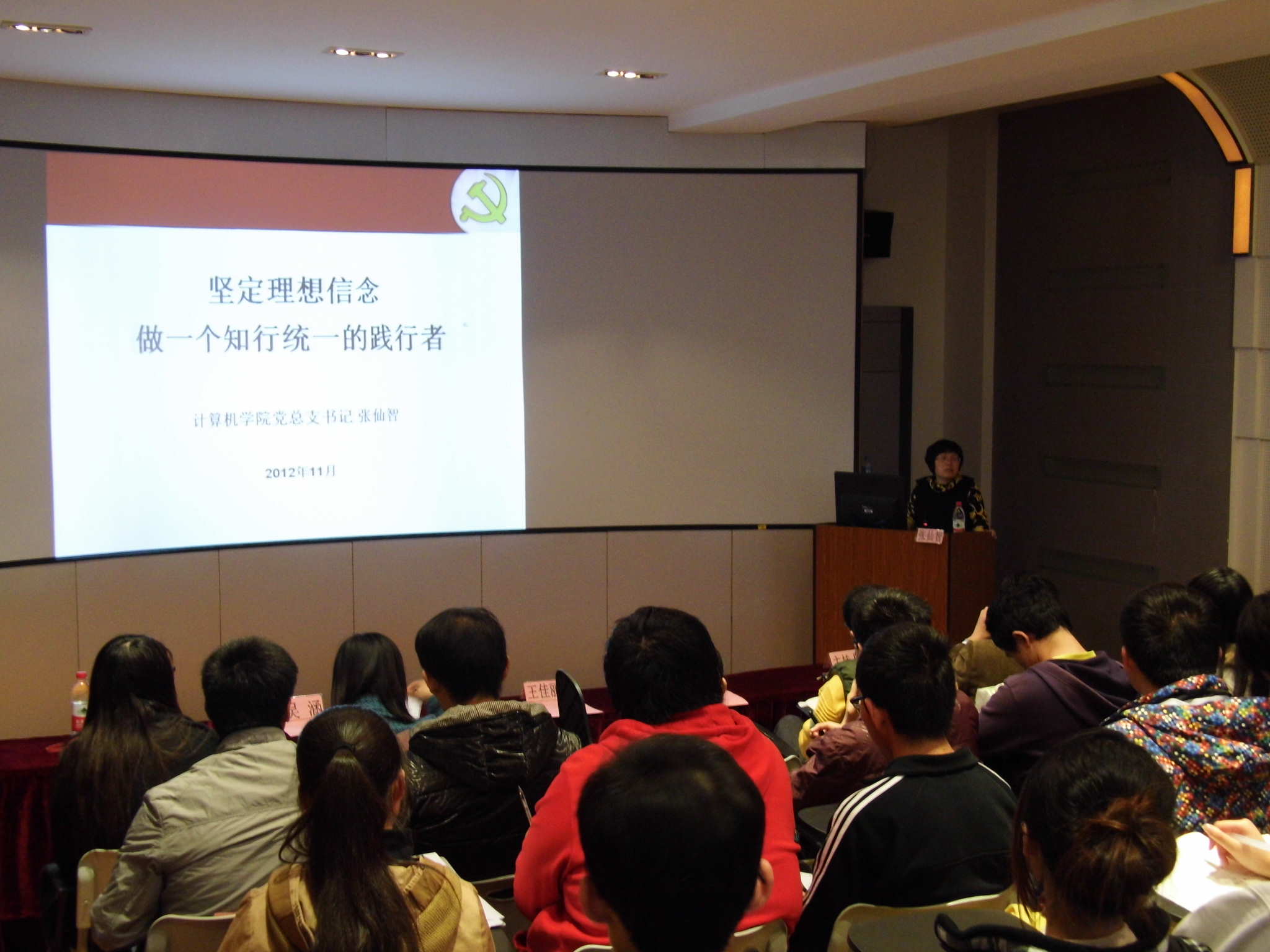 典礼在雄壮的中华人民共和国国歌中开始,计算机系学生一支部书记李壮主持仪式,并向全体学员介绍了本次中级党校的学员情况、课程安排以及考核办法。王佳丽老师向全体学员提出了教学要求,勉励大家以一名党员的标准严格要求自己,通过本次中党学习全面提升自己。最后张仙智老师做了题为“坚定理想信念,做一个知行统一的践行者”的动员报告。张老师从端正入党动机、心怀理想抱负、塑造理想人格、严格遵守纪律四个角度出发,全面阐述了如何做一个知行统一的践行者。