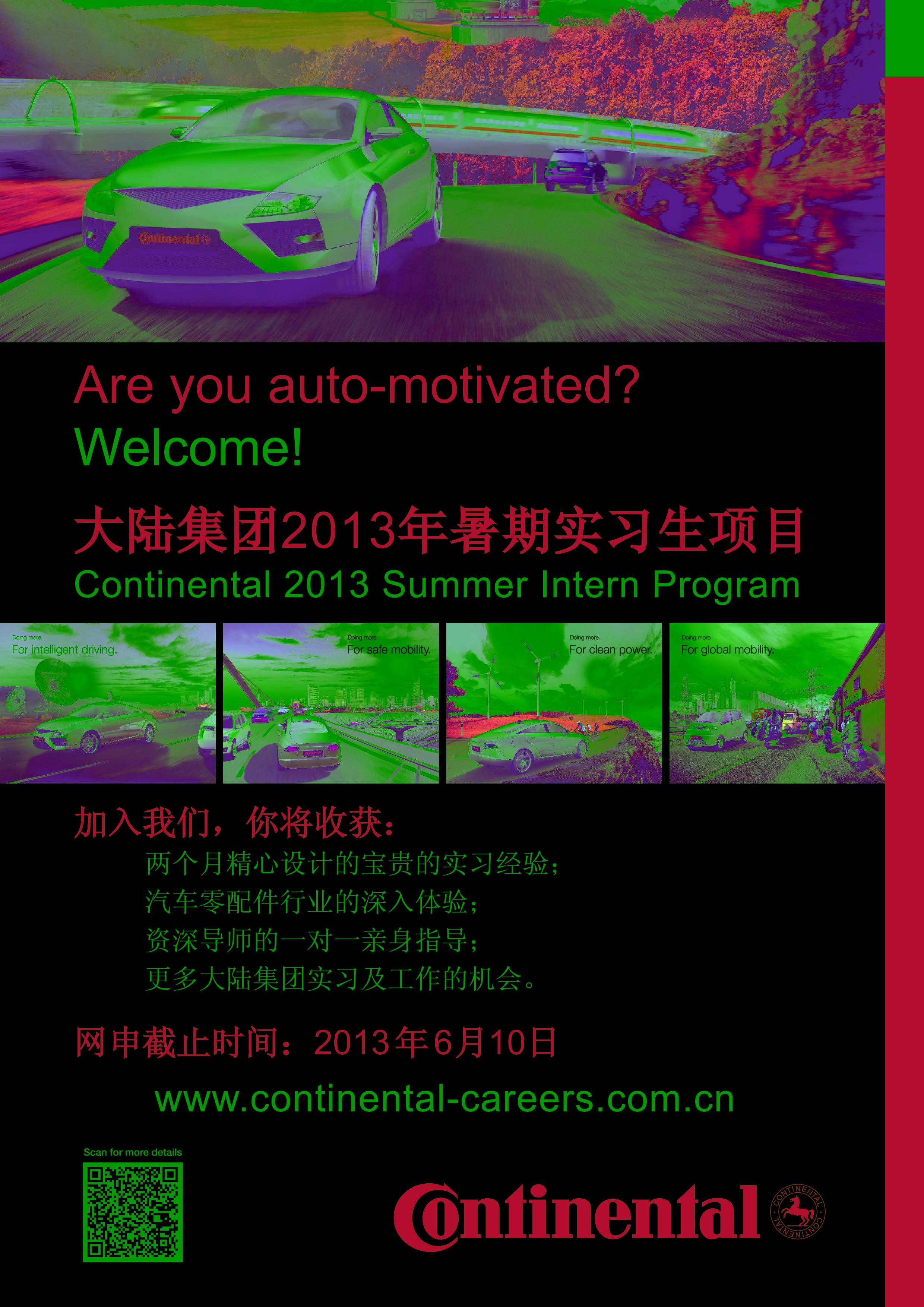 【招聘信息】大陆集团中国区暑期实习生招聘职位