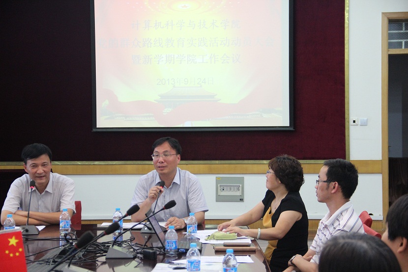 院长雷景生指出全院教职工要积极支持和参与群众路线教育实践活动,群策群力、齐心合力、凝心聚力到学院教学科研管理工作上来,学院也会重视大家讨论提交的意见和问题,关心大家的发展和利益,同时围绕着新进教师上课督导、专业验收问题、科研奖励方面做了详尽阐述,为新学期工作作了部署。