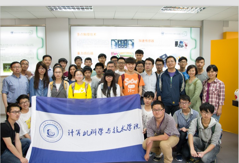 在复旦大学计算机实践工作站,师生在解说员指引下,饶有兴趣第参观体验了“海宝机器人”、“智慧树”、“聊天机器人”、“二进制和算盘”、“Kinect体感游戏”、“双屏游戏”、“声音感应”、“力反馈”、 “三轴陀螺仪”和“多点触摸”等项目,在活动参与中感受计算机给生活带来的便捷。