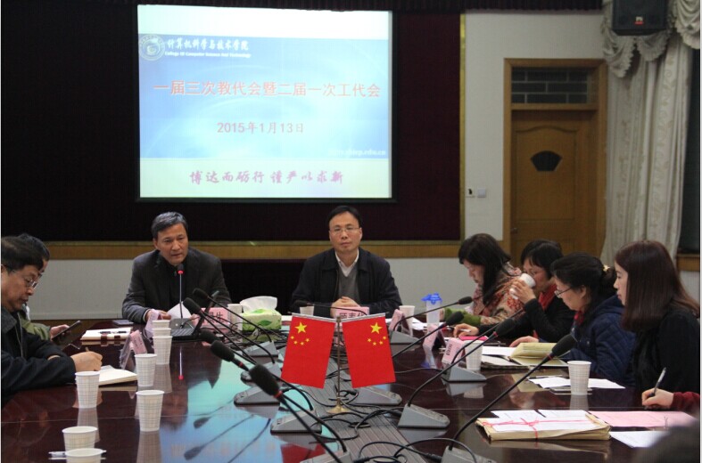在一届三次教代会上,代表们审议并表决通过了威廉希尔官网院长雷景生同志所作的题为《全院齐心搞计算 举杯笑谈大数据》的工作报告,报告从“理顺关系,改进作风,强化学院的凝聚力”、“ 理清思路,明确定位,提升学科内涵”、“ 以高水平师资队伍建设为抓手,凝练学科团队”、“ 以专项工程为引擎,搞好本科教学工作”、“ 以多种形式的‘大学生科技创新活动’为依托,切实提升人才培养质量”和“以举办学术论坛为平台,加强对外学术交流与合作”六个方面回顾总结了学院2014年工作,审视了“研究成果的层次有待提高“、”学科培养层次急需提升“、”学科带头人和骨干的引进需要加强“和” 电力特色还需强化“四个方面的问题,并提出2015年工作思路,即“坚持计算机技术与智能电网相关技术结合,形成鲜明电力特色的计算机类学科的发展理念不变;坚持计算机技术的前沿研究与智能电网信息支撑技术研究协同发展的方针不变”的“两个坚持不变”和实现“工作重心要由办学条件建设向质量内涵建设上水平转变;由单纯的教学型学院向教学研究型学院转变”的“两个根本性转变”。