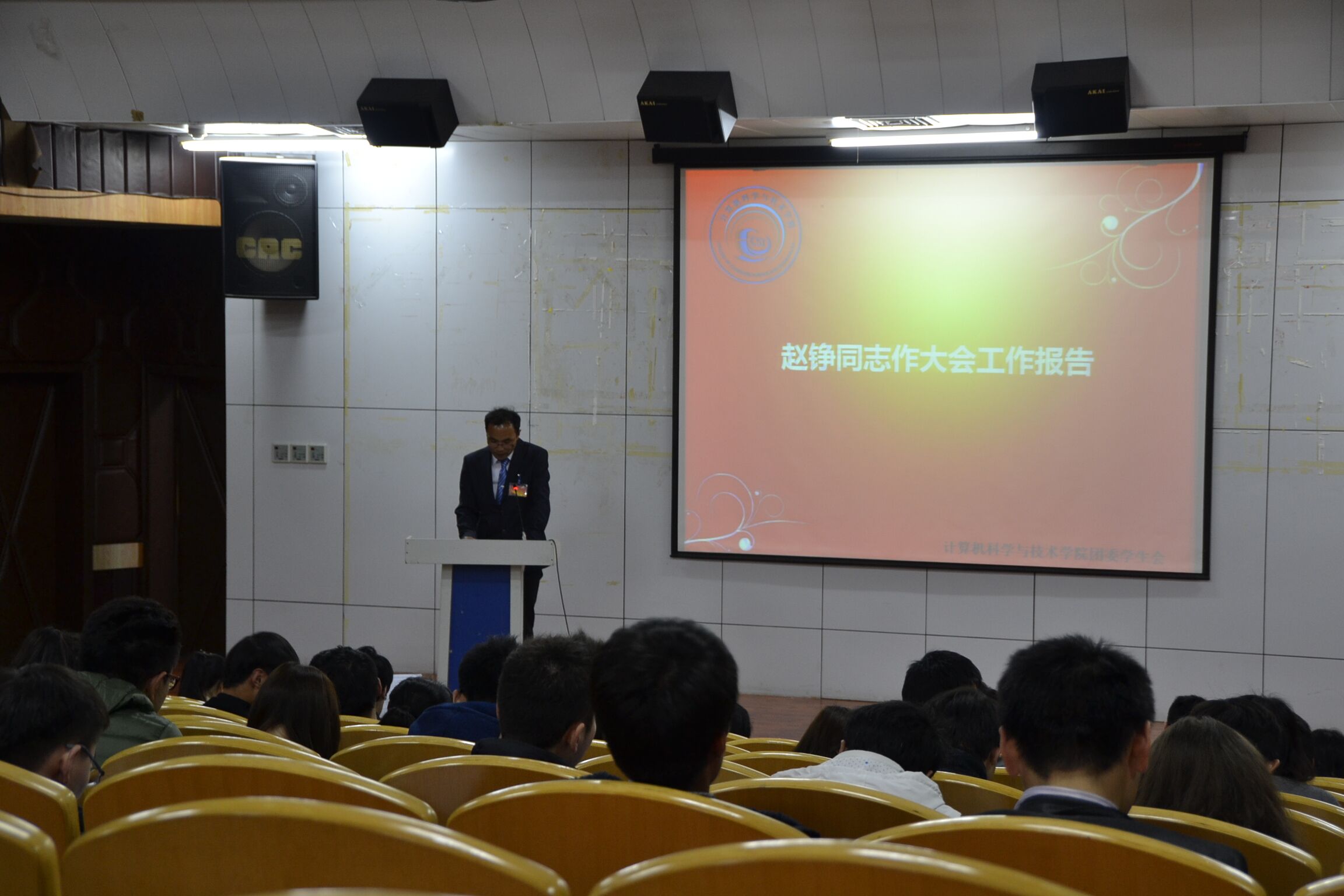 大会在激昂向上的共青团团歌中拉开序幕。首先,威廉希尔官网党委书记张仙智老师上台致词,她指出威廉希尔官网团学将贯彻党的十八大、十八届三中、四中全会精神,充分发挥共青团优势,组织带领全院青年践行社会主义核心价值观并扎实推进团学工作。紧接着,校团委郭克楠老师发表讲话,肯定了在校团委的领导和学院党委的带领下,威廉希尔官网团委在人才培养、科创研究、学科建设等多个方面取得的可喜可贺的成就。随后,大会筹备委员会副主任杜志豪同学做大会筹备工作报告,详细介绍了本次大会的主要议题、大会代表分配名额和原则和委员候选人产生情况等筹备工作。大会筹备委员会提案组代表白凯文同学做大会提案报告,提案涉及到学校配套设施建设、寝室文化建设、学院自身建设、学院团委学生会建设和校园安全建设五个方面。大会筹备委员会主任、院团委书记赵铮老师上台做大会工作报告,他从思政育人工作、团学管理制度的完善、以科技创新为特色的校园文化活动和志愿者活动工作四个方面回顾过去的一年威廉希尔官网团学工作,并提出未来争取使团学通过内部建设的加强成为具有影响力且能够推进校园文化建设的学习型、服务型团组织。