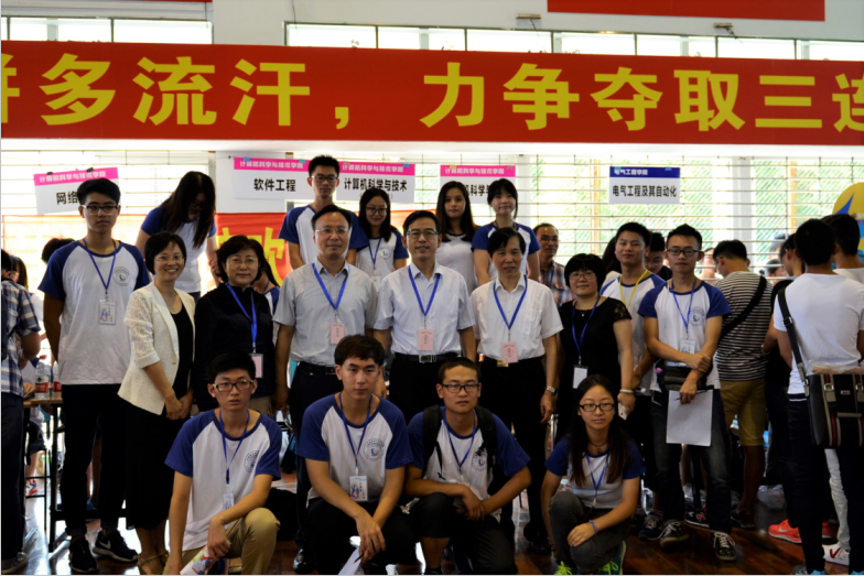 在迎新过程中,学校党委书记成旦红,校长李和兴,党委副书记、副校长顾春华,党委副书记、纪委书记李艳玲,副校长翁培奋走到学院摊前,热情地慰问志愿者,肯定了学院的迎新工作,并与学院的迎新工作师生合影。