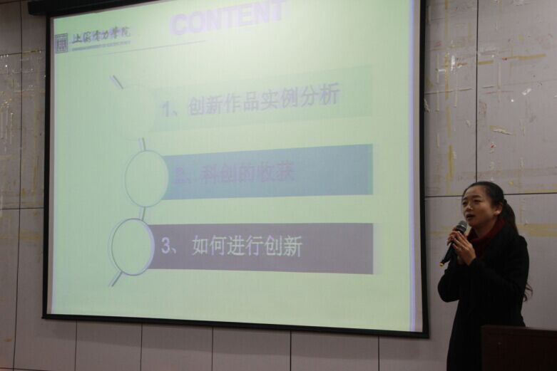 视频回顾了科技月活动的精彩场景。赵铮老师为创新创意标志语大赛获奖的同学进行颁奖,同时鼓励同学们积极参与更多的创新创意活动,将科创与生活有机结合起来。刘大明老师为同学们讲述了申报科创的流程、时间节点和方式,提倡处在互联网时代的大学生,特别是计算机专业的学生,多用互联网思维去思考、去科创,也可以就当下很热的“物联网”、“树莓派”、“无人机”等方面进行科技创新。随后徐嘉辰同学和邱依强同学分别向在座的同学简要介绍了威廉希尔官网机器人实验室的旅游机器人和教育机器人,并现场展示了教育机器人的擂台赛。朱瑞老师分享了她的科创经历,用视频的方式演示了六轮小车适应各种不同类型路面的机器人、可以跳舞的机器人。她告诉同学们,科创不仅可以丰富专业知识,还可以提高动手能力,学会展示自己作品的方法,学会表达自己的思想、锻炼临场应变的能力。最后,副院长毕忠勤老师致闭幕词,他就“如何创新”这个问题,提出了了解创新设计、确定设计主题、培养创新思维三个方面的要求。