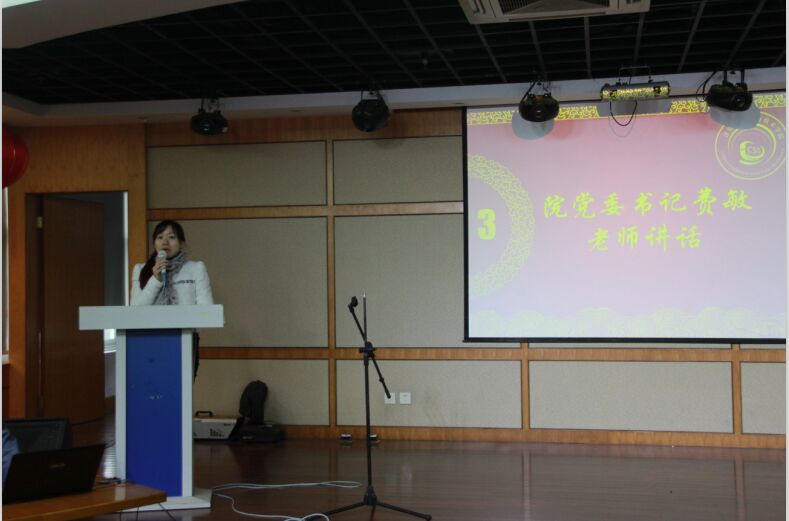 首先通过视频回顾了2015年团学辛勤耕耘的历程。院学生会副主席余元其同学从“思想引领、制度完善、学风建设、志愿弘扬、生活服务、课外活动”六大部分回顾总结了团学一年的工作经历,并从“过于急躁地创新、与支部联系不完全、团学各部门缺少沟通合作、对副部培养较慢、缺少学院特色活动”五个方面提出了团学工作的不足及改进措施。在观看了网络文明志愿者宣传视频后,老师和团学干部在网络文明宣传横幅上签名并且合影。随后,院党委书记费敏老师讲话,费老师首先表达了对团学成员付出的感谢,分享了自己对学生工作的理解,对团学干部从个人素质提升、自我发展提出了要求,希望将个人发展与团学发展联系起来,培养责任意识和担当意识,并表达了对团学工作的支持和祝福。接下来由团学各部长从部门职能、工作情况、工作计划等方面对部门工作进行总结汇报。最后赵铮老师对本次会议进行总结,从“做好传帮代作用、注重工作细节、突出亮点加强合作、实施考核评选”四个方面提出要求。