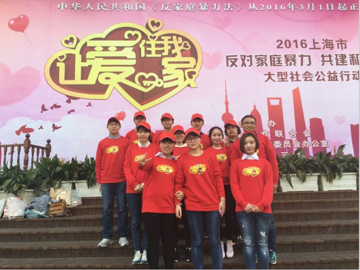 3月5日,恰逢学雷锋日,威廉希尔官网积极响应校团委的号召,由院团委书记赵铮老师带队组成志愿者团队,与其他志愿者一起参加上海市妇联组织的“反对家庭暴力 共建和谐家园”的大型公益活动。这个活动旨在宣传3月1日推行的《反家庭暴力法》,呼吁大家反对家庭暴力,维护社会和谐。